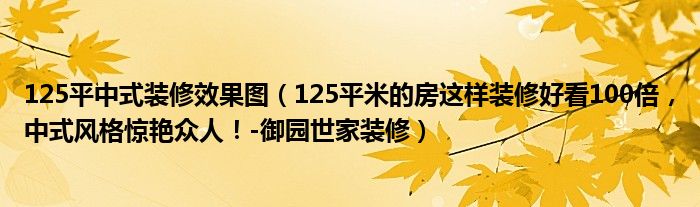 125平中式装修效果图(125平米的房这样装修好看100倍,中式风格惊艳众人!-御园世家装修)