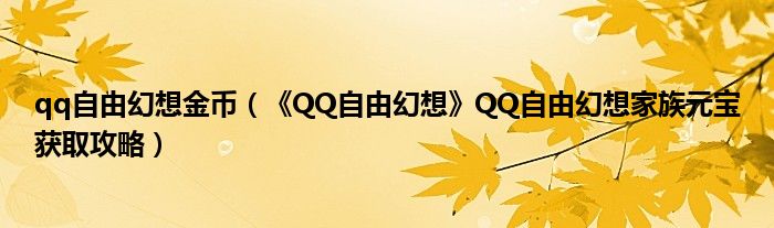 导读 大家好,太太来为大家解答以上问题。qq自由幻想金币,《QQ自由幻想》QQ自由幻想家族元宝获取攻略很多人还不知道,现在让我们一起来看看吧!