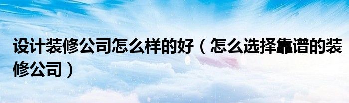 设计装修公司怎么样的好(怎么选择靠谱的装修公司)