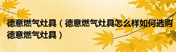 德意燃气灶具(德意燃气灶具怎么样如何选购德意燃气灶具)