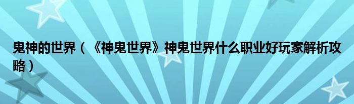 鬼神的世界(《神鬼世界》神鬼世界什么职业好玩家解析攻略)