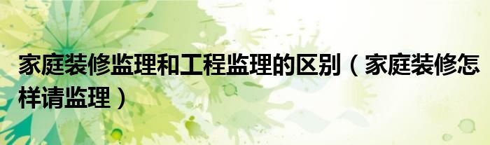 家庭装修监理和工程监理的区别(家庭装修怎样请监理)