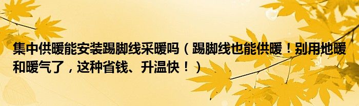 集中供暖能安装踢脚线采暖吗(踢脚线也能供暖!别用地暖和暖气了,这种省钱、升温快!)