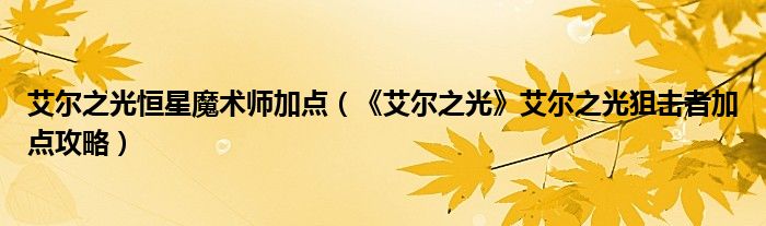 艾尔之光恒星魔术师加点(《艾尔之光》艾尔之光狙击者加点攻略)