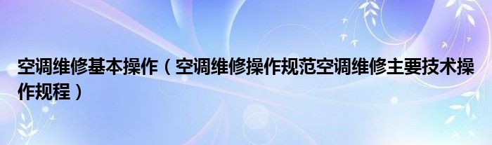 空调维修基本操作(空调维修操作规范空调维修主要技术操作规程)
