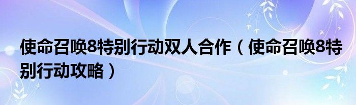 使命召唤8特别行动双人合作(使命召唤8特别行动攻略)