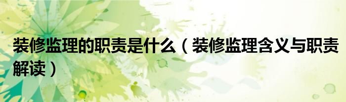 导读 大家好,今天乐乐来为大家解答以上问题。装修监理的职责是什么,装修监理含义与职责解读很多人还不知道,现在让我们一起来看看吧!装修工程