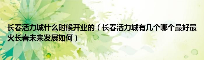 大家好,今天乐乐来为大家解答以上问题。长春活力城什么时候开业的,长春活力城有几个哪个最好最火长春未来发展如何很多人还不知道,现在让我们一起来看看吧!