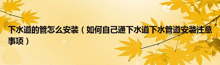 下水道的管怎么安装(如何自己通下水道下水管道安装注意事项)
