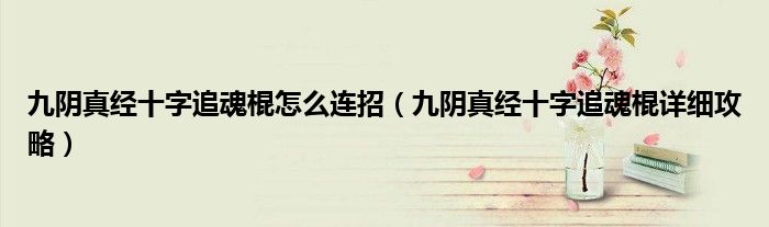 九阴真经十字追魂棍怎么连招(九阴真经十字追魂棍详细攻略)