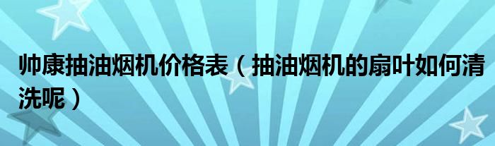 帅康抽油烟机价格表(抽油烟机的扇叶如何清洗呢)