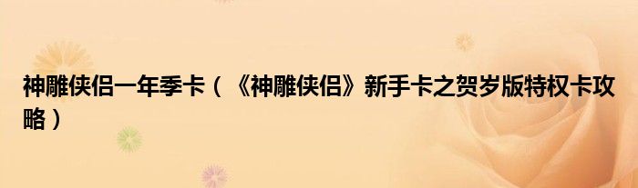 神雕侠侣一年季卡(《神雕侠侣》新手卡之贺岁版特权卡攻略)