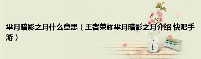 导读 大家好,太太来为大家解答以上问题。芈月暗影之月什么意思,王者荣耀芈月暗影之月介绍 快吧手游很多人还不知道,现在让我们一起来看看吧!