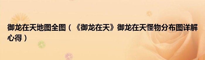 御龙在天地图全图(《御龙在天》御龙在天怪物分布图详解心得)