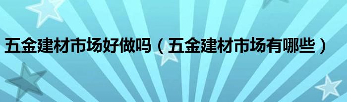 大家好,今天乐乐来为大家解答以上问题。五金建材市场好做吗,五金建材市场有哪些很多人还不知道,现在让我们一起来看看吧!