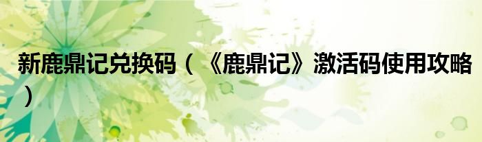新鹿鼎记兑换码(《鹿鼎记》激活码使用攻略)