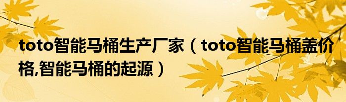 导读 大家好,今天乐乐来为大家解答以上问题。toto智能马桶生产厂家,toto智能马桶盖价格,智能马桶的起源很多人还不知道,现在让我们一起来看看