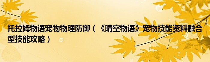 导读 大家好,太太来为大家解答以上问题。托拉姆物语宠物物理防御,《晴空物语》宠物技能资料融合型技能攻略很多人还不知道,现在让我们一起来看