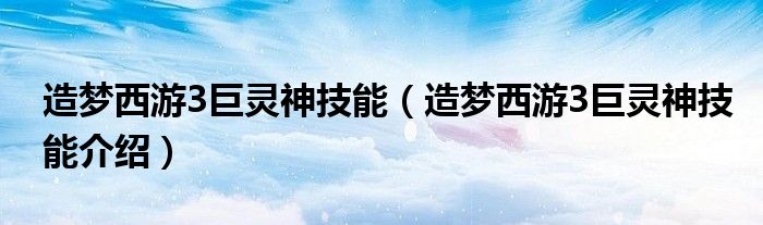导读 大家好,太太来为大家解答以上问题。造梦西游3巨灵神技能,造梦西游3巨灵神技能介绍很多人还不知道,现在让我们一起来看看吧!1、造梦西游3