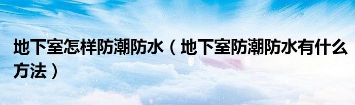 地下室怎样防潮防水(地下室防潮防水有什么方法)