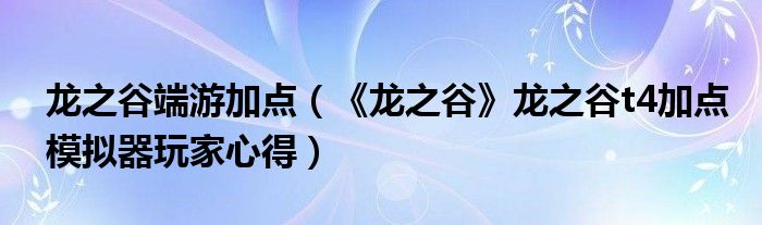 龙之谷端游加点(《龙之谷》龙之谷t4加点模拟器玩家心得)