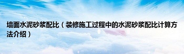 墙面水泥砂浆配比(装修施工过程中的水泥砂浆配比计算方法介绍)