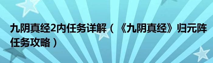 九阴真经2内任务详解(《九阴真经》归元阵任务攻略)