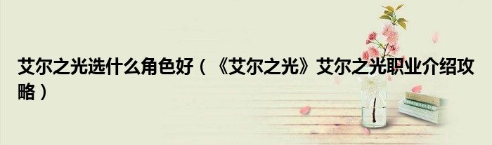 艾尔之光选什么角色好(《艾尔之光》艾尔之光职业介绍攻略)