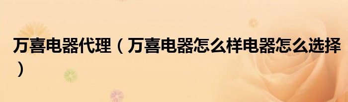 万喜电器代理(万喜电器怎么样电器怎么选择)