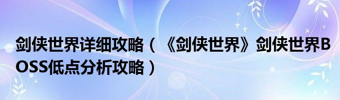 剑侠世界详细攻略(《剑侠世界》剑侠世界BOSS低点分析攻略)