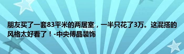 导读 大家好,今天乐乐来为大家解答以上问题。朋友买了一套83平米的两居室,一半只花了3万。这混搭的风格太好看了!-中央傅晶装饰很多人还不知道