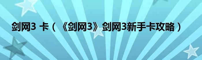剑网3 卡(《剑网3》剑网3新手卡攻略)
