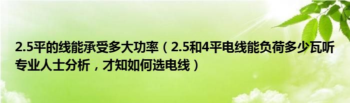 2.5平的线能承受多大功率(2.5和4平电线能负荷多少瓦听专业人士分析,才知如何选电线)