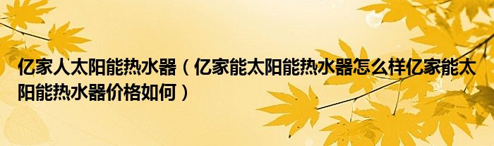 亿家人太阳能热水器(亿家能太阳能热水器怎么样亿家能太阳能热水器价格如何)