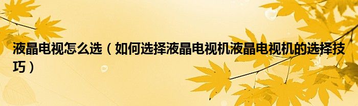 液晶电视怎么选(如何选择液晶电视机液晶电视机的选择技巧)