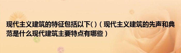 导读 大家好,今天乐乐来为大家解答以上问题。现代主义建筑的特征包括以下( ),现代主义建筑的先声和典范是什么现代建筑主要特点有哪些很多人还