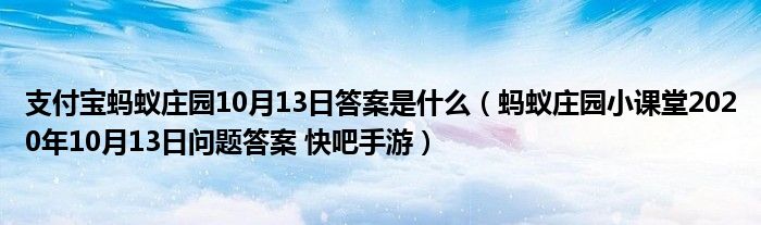支付宝蚂蚁庄园10月13日答案是什么(蚂蚁庄园小课堂2020年10月13日问题答案 快吧手游)