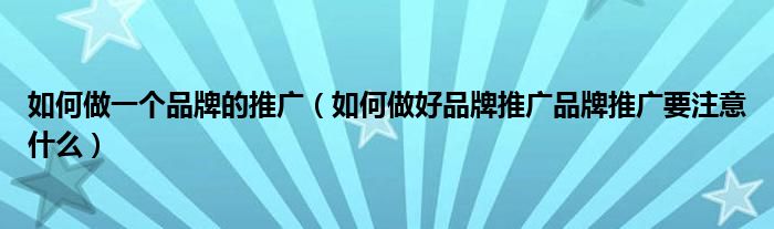 如何做一个品牌的推广(如何做好品牌推广品牌推广要注意什么)