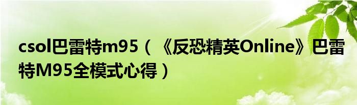 大家好,太太来为大家解答以上问题。csol巴雷特m95,《反恐精英Online》巴雷特M95全模式心得很多人还不知道,现在让我们一起来看看吧!