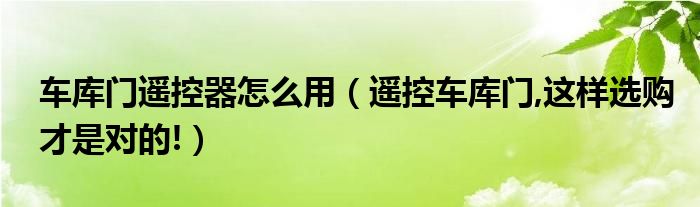 车库门遥控器怎么用(遥控车库门,这样选购才是对的!)