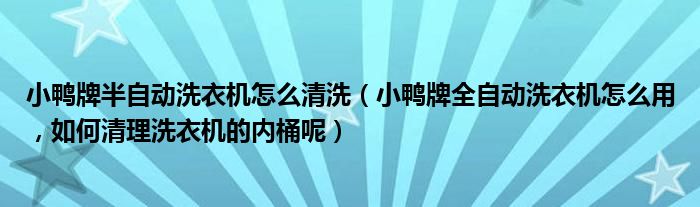 小鸭牌半自动洗衣机怎么清洗(小鸭牌全自动洗衣机怎么用,如何清理洗衣机的内桶呢)