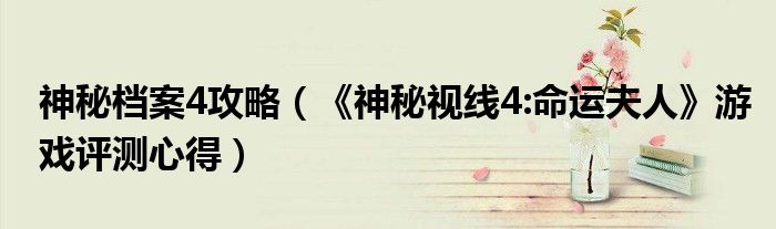 神秘档案4攻略(《神秘视线4:命运夫人》游戏评测心得)