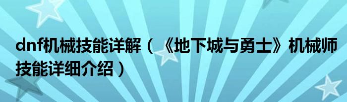 dnf机械技能详解(《地下城与勇士》机械师技能详细介绍)