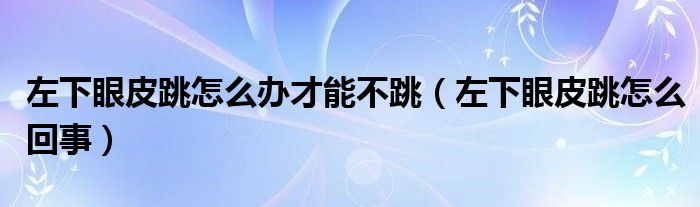 左下眼皮跳怎么办才能不跳(左下眼皮跳怎么回事)