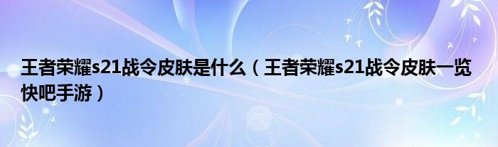 导读 大家好,太太来为大家解答以上问题。王者荣耀s21战令皮肤是什么,王者荣耀s21战令皮肤一览 快吧手游很多人还不知道,现在让我们一起来看看