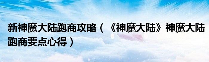 导读 大家好,太太来为大家解答以上问题。新神魔大陆跑商攻略,《神魔大陆》神魔大陆跑商要点心得很多人还不知道,现在让我们一起来看看吧!1、