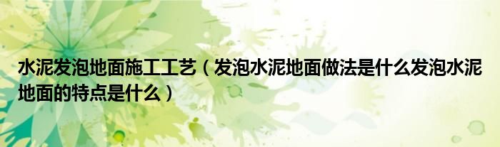 水泥发泡地面施工工艺(发泡水泥地面做法是什么发泡水泥地面的特点是什么)