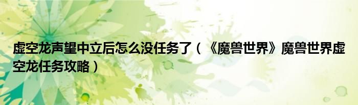 虚空龙声望中立后怎么没任务了(《魔兽世界》魔兽世界虚空龙任务攻略)