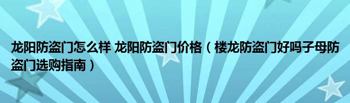 龙阳防盗门怎么样 龙阳防盗门价格(楼龙防盗门好吗子母防盗门选购指南)