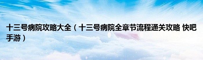 大家好,太太来为大家解答以上问题。十三号病院攻略大全,十三号病院全章节流程通关攻略 快吧手游很多人还不知道,现在让我们一起来看看吧!